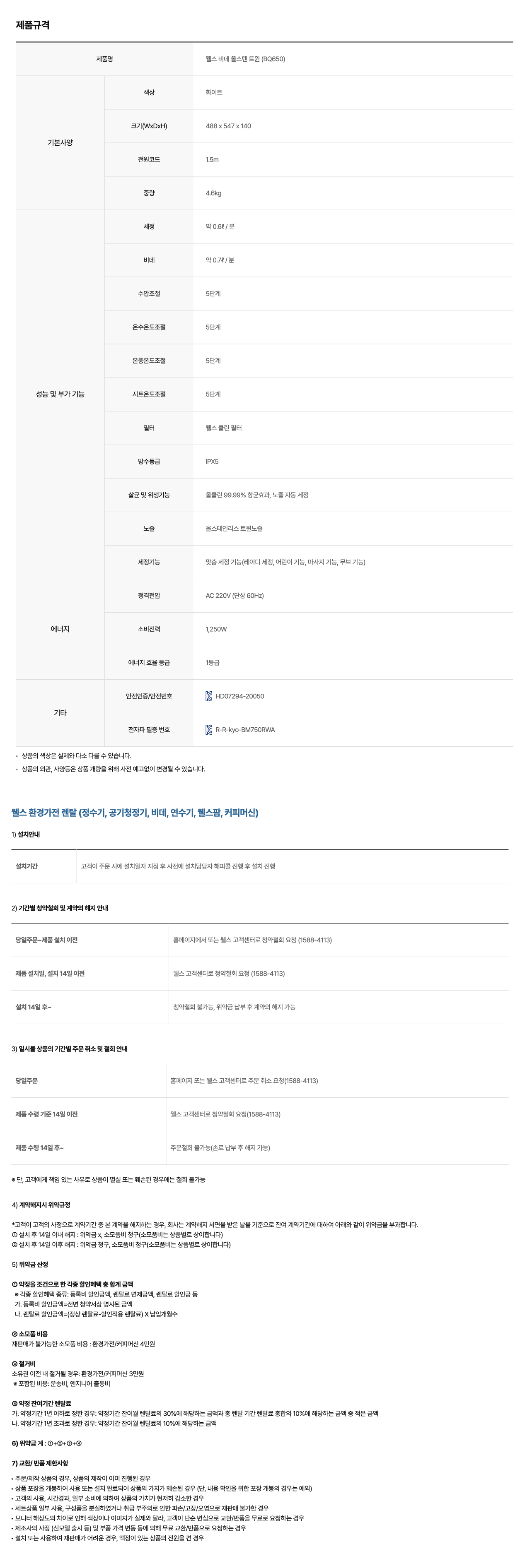 | A/S 기간 | 렌탈기간 내 |
